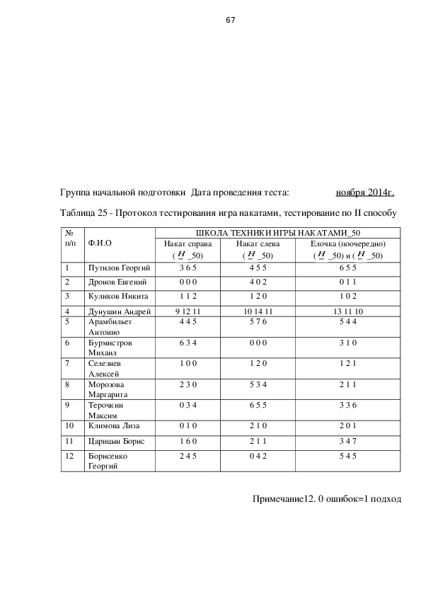 достижении результата 50 накатов. 0 ошибок равняется одному подходу