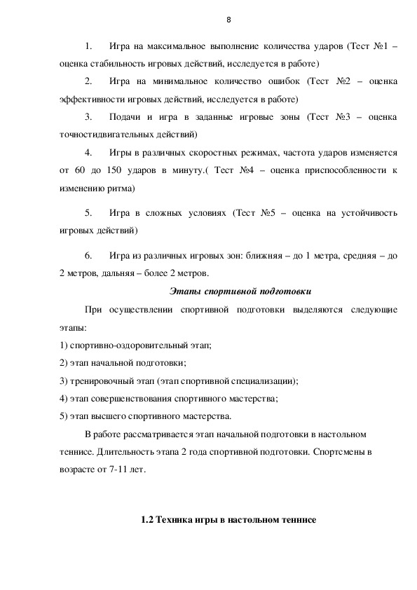 технической подготовленности спортсменов, в настольном теннисе на этапе