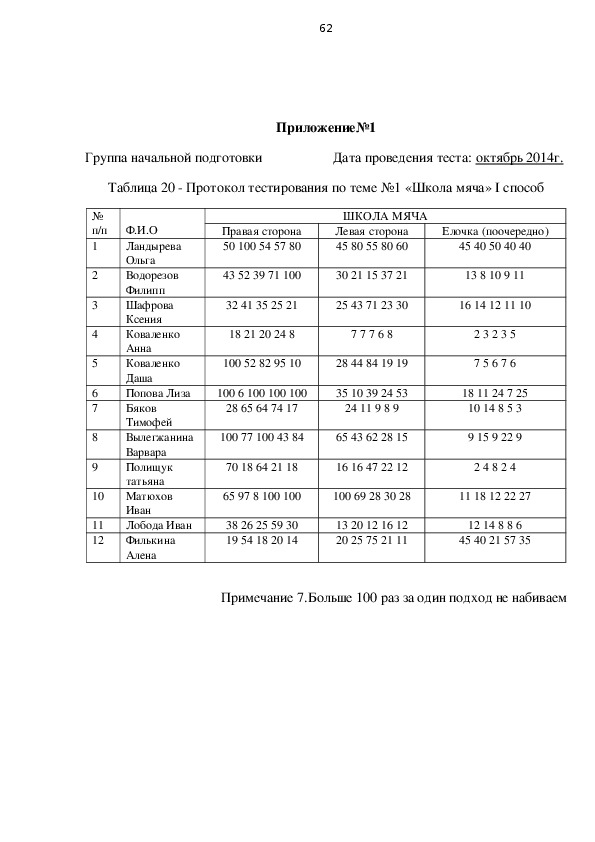 подготовки по набиванию мяча на правой стороне IIспособ(Критерий 1.2)