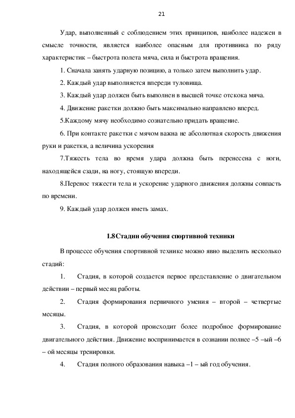 1.7. Девять принципов выполнения удара по Шпраху …………………20