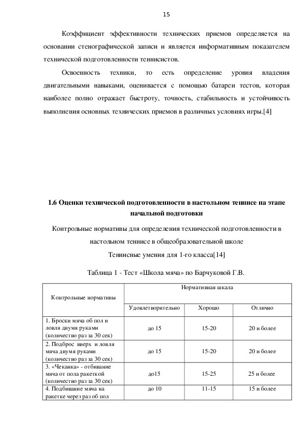 1.6. Оценки технической подготовленности в настольном теннисе на