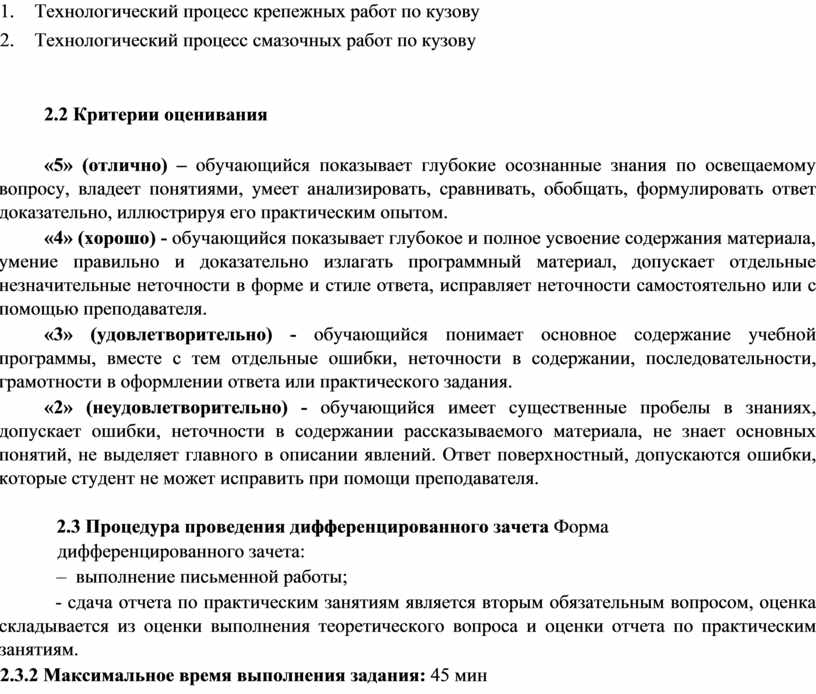 2.3 Процедура проведения дифференцированного зачета Форма дифференцированного зачета:
