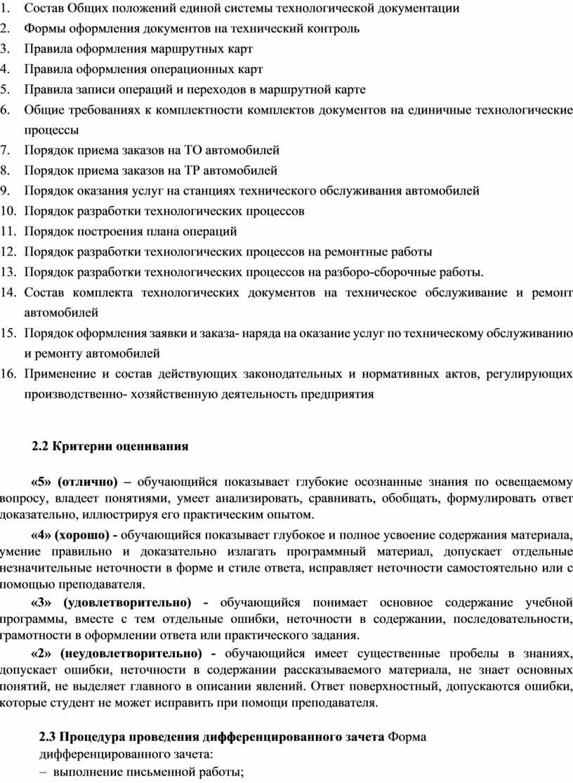 2.3 Процедура проведения дифференцированного зачета Форма дифференцированного зачета: