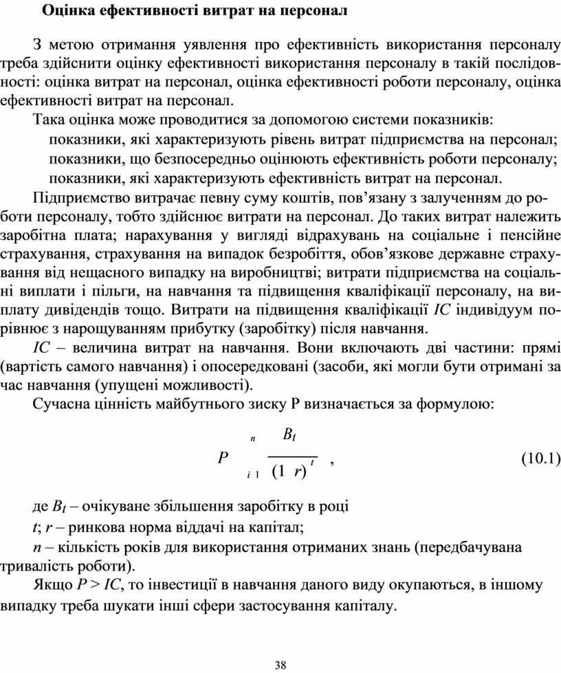 боти персоналу, тобто здійснює витрати на персонал. До таких витрат належить заробітна плата; нарахування у вигляді відрахувань на соціальне і пенсійне страхування, страхування на випадок безробіття, обов’язкове державне страху-вання від нещасного випадку на виробництві; витрати підприємства на соціаль-ні виплати і пільги, на навчання та підвищення кваліфікації персоналу, на ви-плату дивідендів тощо. Витрати на підвищення кваліфікації ІС індивідуум по-рівнює з нарощуванням прибутку (заробітку) після навчання.