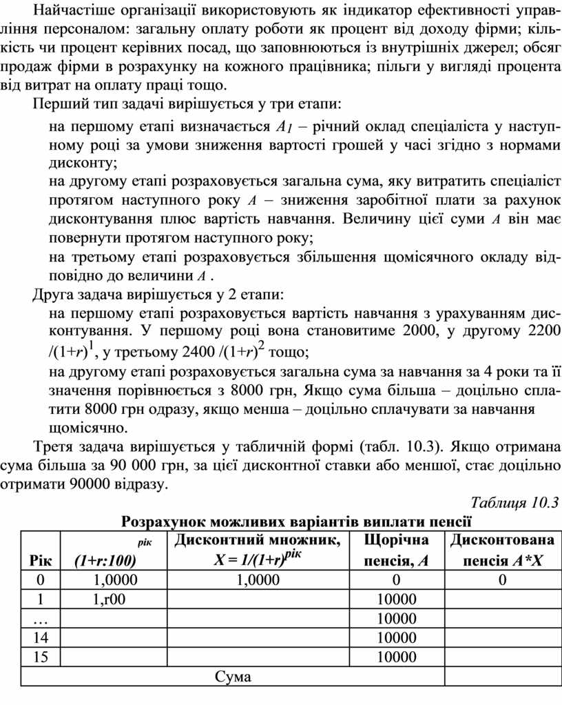 Третя задача вирішується у табличній формі (табл. 10.3). Якщо отримана сума більша за 90 000 грн, за цієї дисконтної ставки або меншої, стає доцільно отримати 90000 відразу.