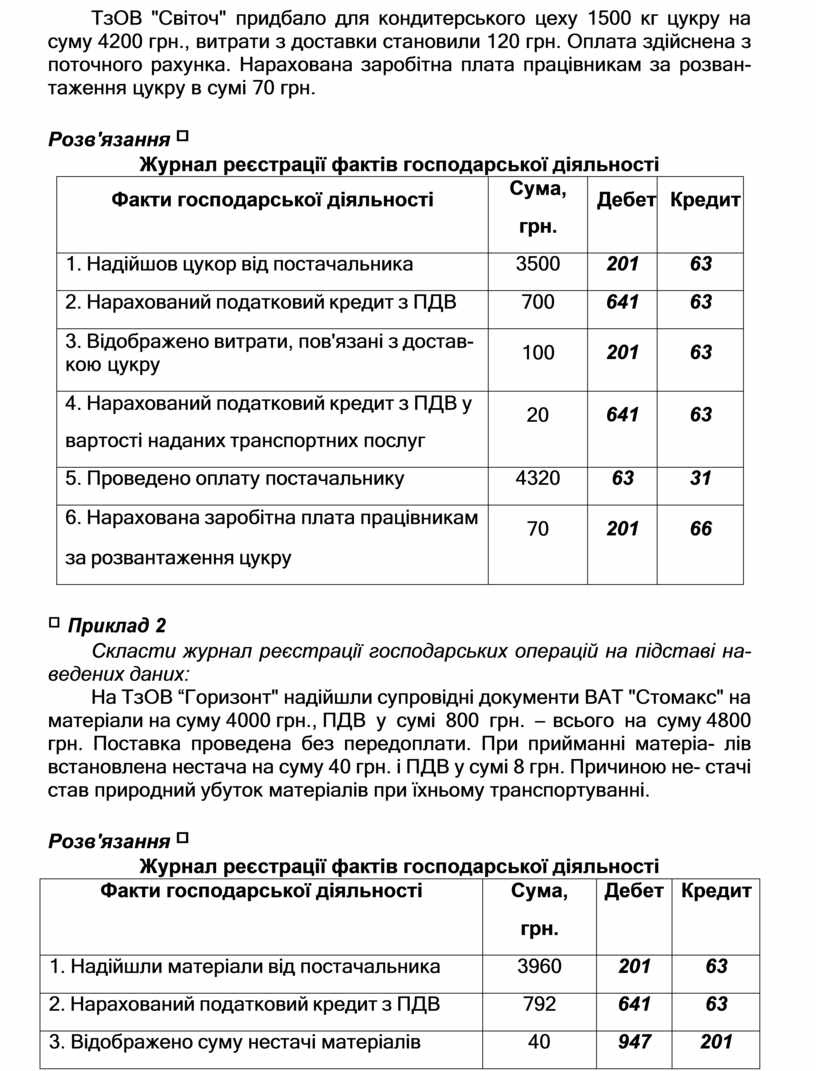 Скласти журнал реєстрації господарських операцій на підставі на- ведених даних: