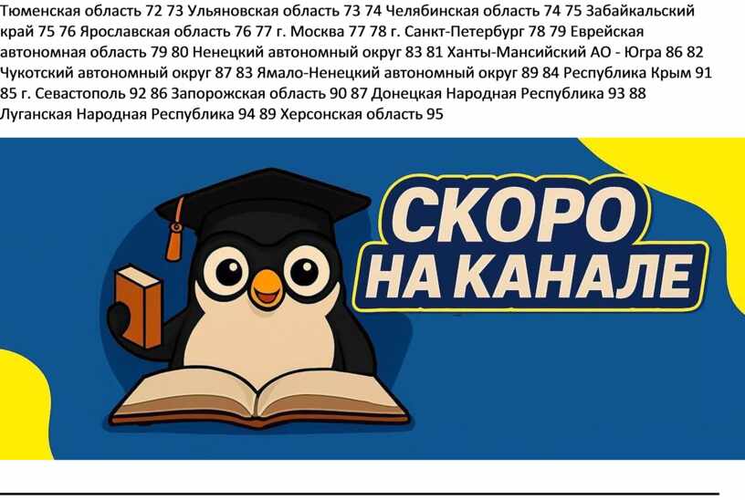 1 Республика Адыгея 01 2 Республика Башкортостан 02 3 Республика Бурятия 03 4 Республика Алтай 04 5 Республика Дагестан 05 6 Республика Ингушетия 06 7 Кабардино-Балкарская Республика 07 8 Республика Калмыкия 08 9 Карачаево-Черкесская Республика 09 10 Республика Карелия 10 11 Республика Коми 11 12 Республика Марий Эл 12 13 Республика Мордовия 13 14 Республика Саха (Якутия) 14 15 Республика Северная Осетия - Алания 15 16 Республика Татарстан (Татарстан) 16 17 Республика Тыва 17 18 Удмуртская Республика 18 19 Республика Хакасия 19 20 Чеченская Республика 20 21 Чувашская Республика - Чувашия 21 22 Алтайский край 22 23 Краснодарский край 23 24 Красноярский край 24 25 Приморский край 25 26 Ставропольский край 26 27 Хабаровский край 27 28 Амурская область 28 29 Архангельская область 29 30 Астраханская область 30 31 Белгородская область 31 32 Брянская область 32 33 Владимирская область 33 34 Волгоградская область 34 35 Вологодская область 35 36 Воронежская область 36 37 Ивановская область 37 38 Иркутская область 38 39 Калининградская область 39 40 Калужская область 40 41 Камчатский край 41 42 Кемеровская область 42 43 Кировская область 43 44 Костромская область 44 Справочник субъекты Российской Федерации № п/п Наименование субъекта Российской Федерации Код субъекта РФ 45 Курганская область 45 46 Курская область 46 47 Ленинградская область 47 48 Липецкая область 48 49 Магаданская область 49 50 Московская область 50 51 Мурманская область 51 52 Нижегородская область 52 53 Новгородская область 53 54 Новосибирская область 54 55 Омская область 55 56 Оренбургская область 56 57 Орловская область 57 58 Пензенская область 58 59 Пермский край 59 60 Псковская область 60 61 Ростовская область 61 62 Рязанская область 62 63 Самарская область 63 64 Саратовская область 64 65 Сахалинская область 65 66 Свердловская область 66 67 Смоленская область 67 68 Тамбовская область 68 69 Тверская область 69 70 Томская область 70 71 Тульская область 71 72 Тюменская область 72 73 Ульяновская область 73 74 Челябинская область 74 75 Забайкальский край 75 76 Ярославская область 76 77 г. Москва 77 78 г. Санкт-Петербург 78 79 Еврейская автономная область 79 80 Ненецкий автономный округ 83 81 Ханты-Мансийский АО - Югра 86 82 Чукотский автономный округ 87 83 Ямало-Ненецкий автономный округ 89 84 Республика Крым 91 85 г. Севастополь 92 86 Запорожская область 90 87 Донецкая Народная Республика 93 88 Луганская Народная Республика 94 89 Херсонская область 95
