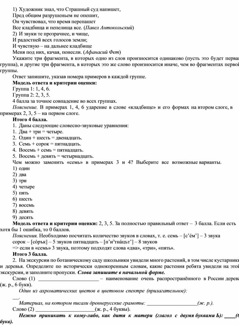 Модель ответа и критерии оценки: шёпот/шепот. 1 балл.