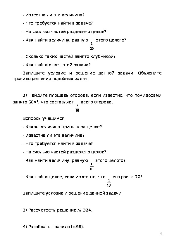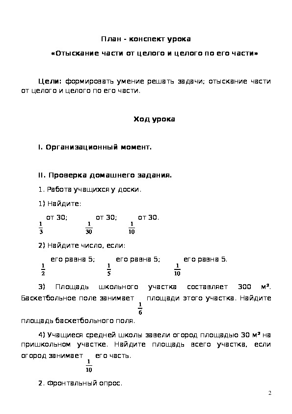 4) Учащиеся средней школы завели огород площадью 30 м2 на пришкольном участке. Найдите площадь всего участка, если огород занимает его часть.