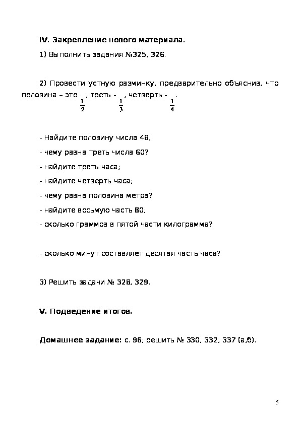 Домашнее задание: с. 96; решить № 330, 332, 337 (а,б).