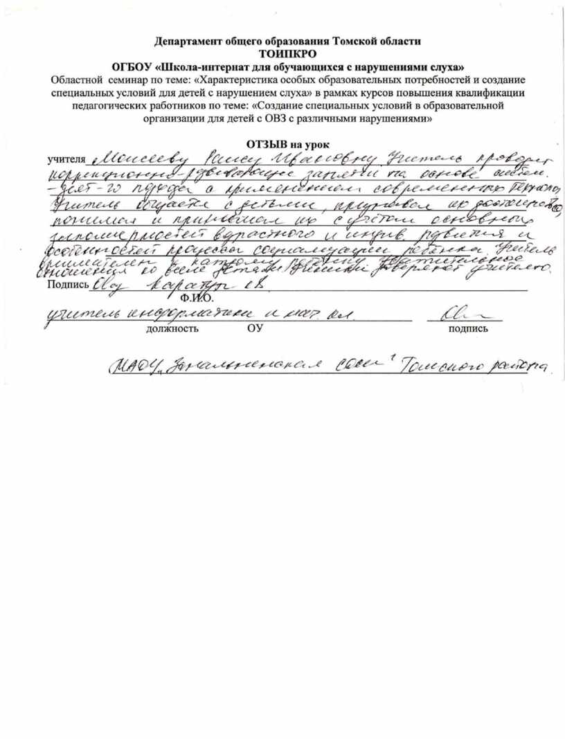 Отзывы дают положительную характеристику педагогической деятельности учителя Моисеевой Раисы Ивановны.