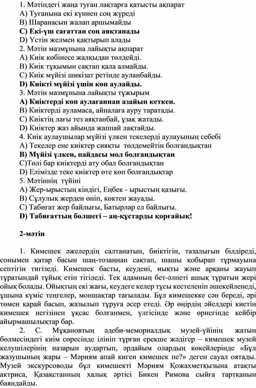 14.Мәтіннің төртінші азатжолына лайықты тақырып