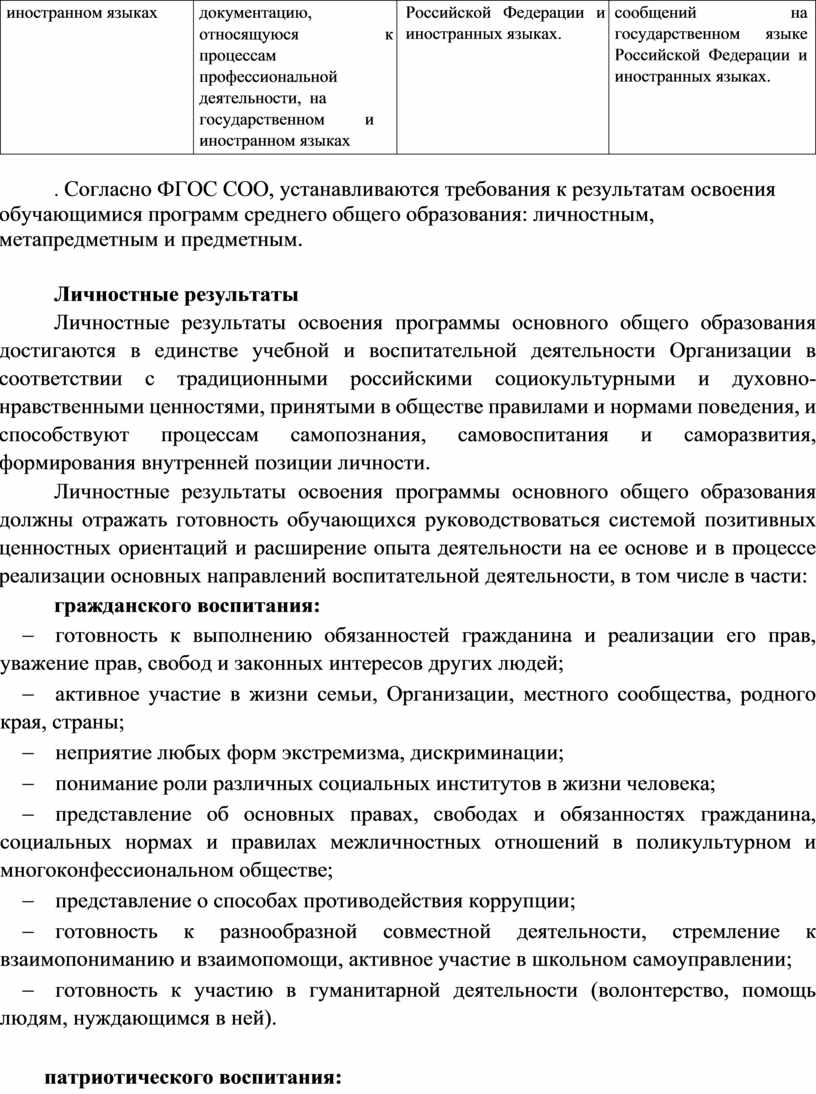 . Согласно ФГОС СОО, устанавливаются требования к результатам освоения обучающимися программ среднего общего образования: личностным, метапредметным и предметным.