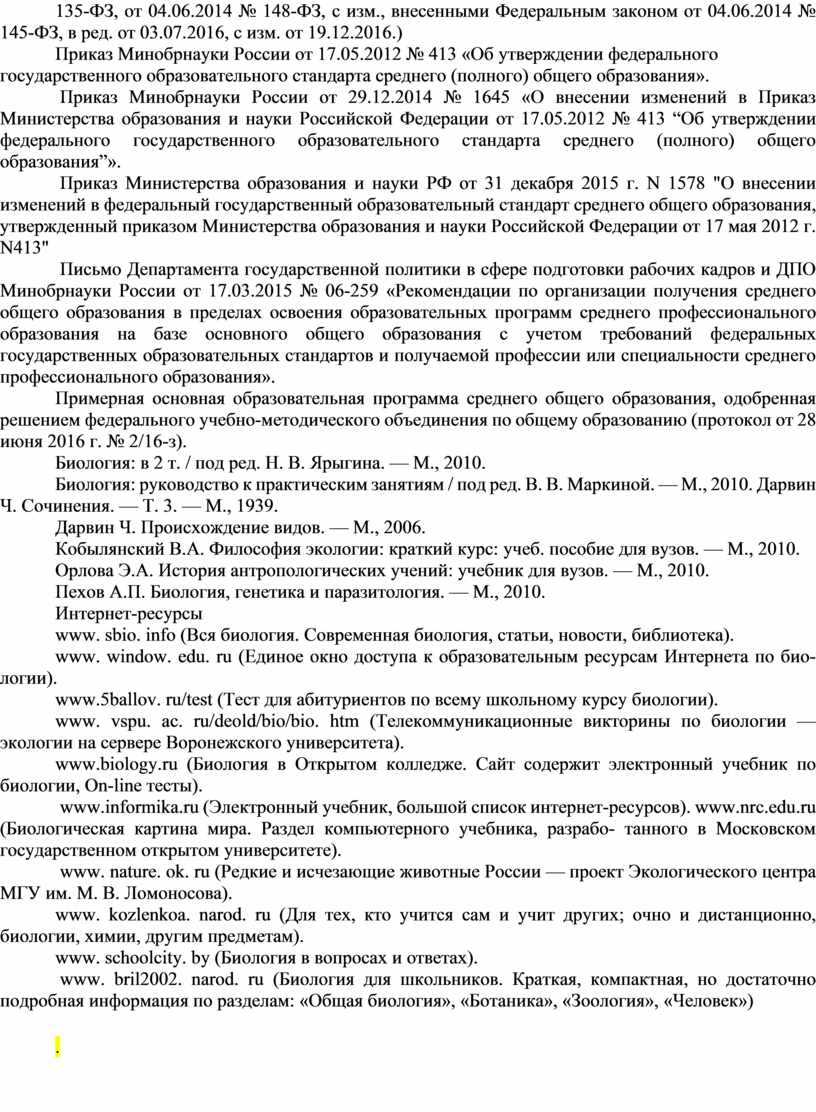 Примерная основная образовательная программа среднего общего образования, одобренная решением федерального учебно-методического объединения по общему образованию (протокол от 28 июня 2016 г. № 2/16-з).