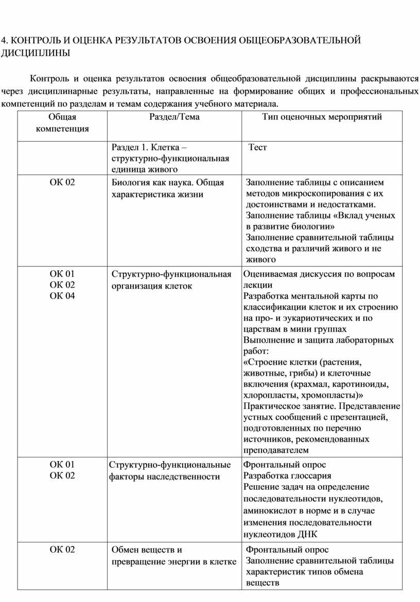 4. КОНТРОЛЬ И ОЦЕНКА РЕЗУЛЬТАТОВ ОСВОЕНИЯ ОБЩЕОБРАЗОВАТЕЛЬНОЙ ДИСЦИПЛИНЫ