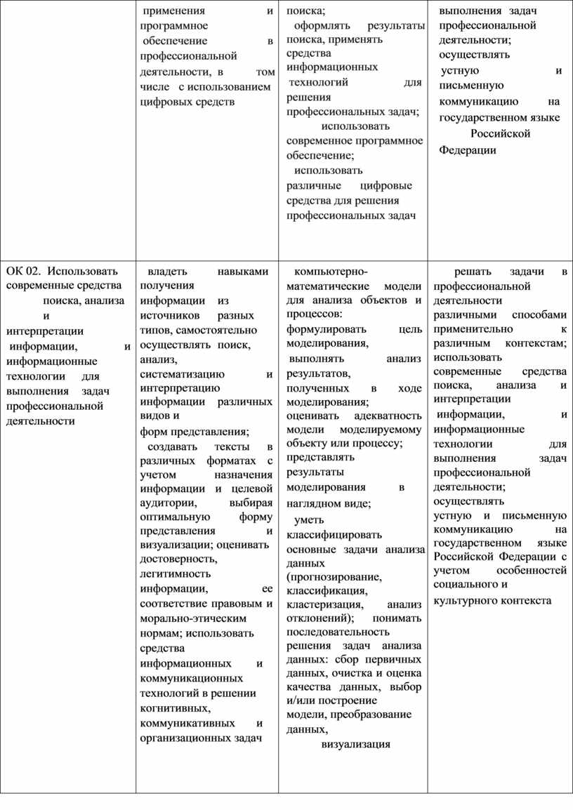 решать задачи в профессиональной деятельности различными способами применительно к различным контекстам; использовать современные средства поиска, анализа и интерпретации информации, и информационные технологии для выполнения задач профессиональной деятельности; осуществлять устную и письменную коммуникацию на государственном языке Российской Федерации с учетом особенностей социального и культурного контекста |