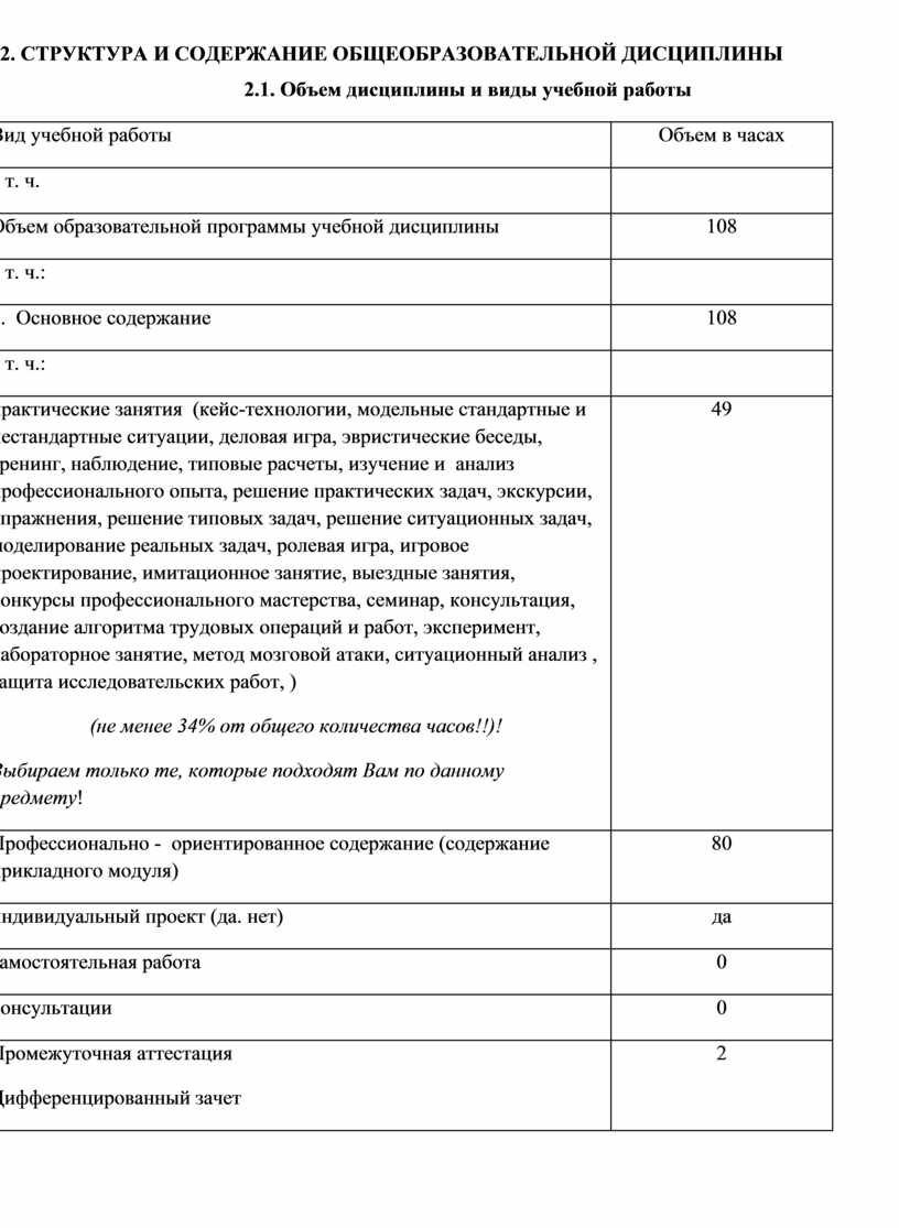 Трудоемкость дисциплины «Информатика» на базовом уровне составляет 108 часов, из которых 52 часов составляет профессионально- ориентированное содержание, усиливающее профессиональную составляющую по специальности 15.02.18 ТЕХНИЧЕСКАЯ ЭКСПЛУАТАЦИЯ И ОБСЛУЖИВАНИЕ РОБОТИЗИРОВАННОГО ПРОИЗВОДСТВА (ПО ОТРАСЛЯМ)