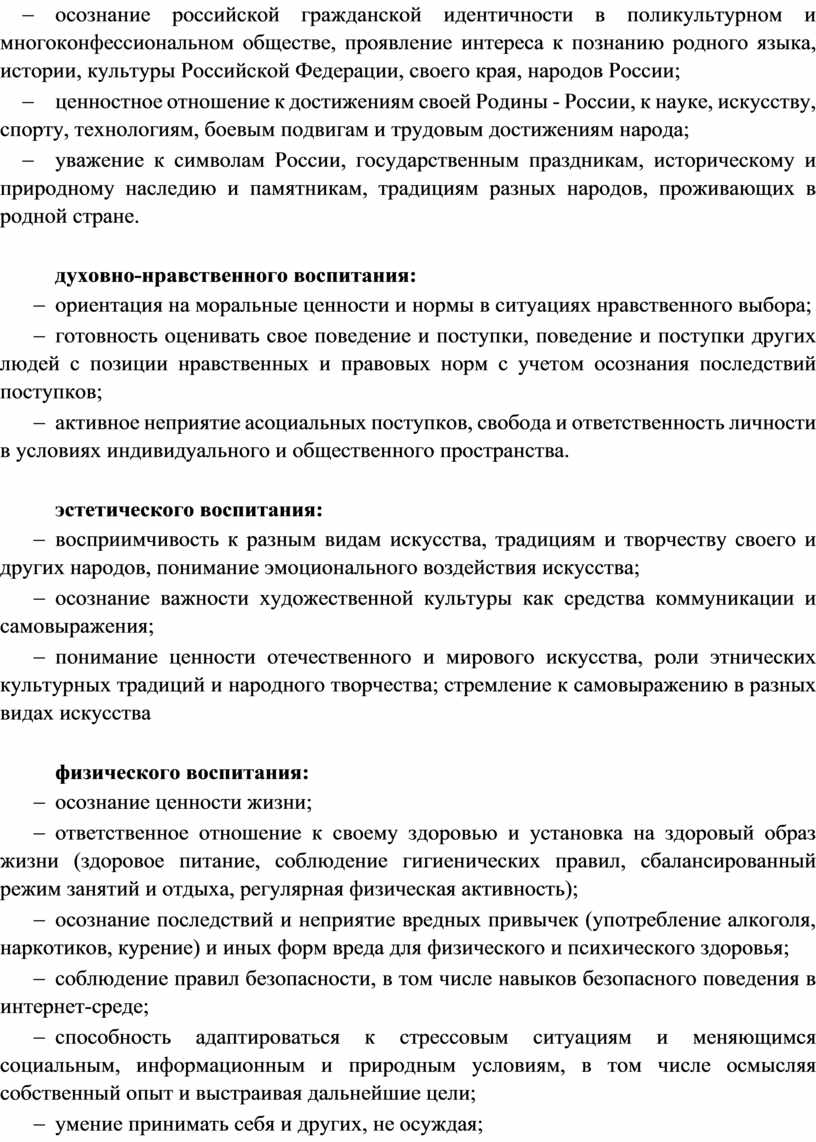 - осознание последствий и неприятие вредных привычек (употребление алкоголя, наркотиков, курение) и иных форм вреда для физического и психического здоровья;