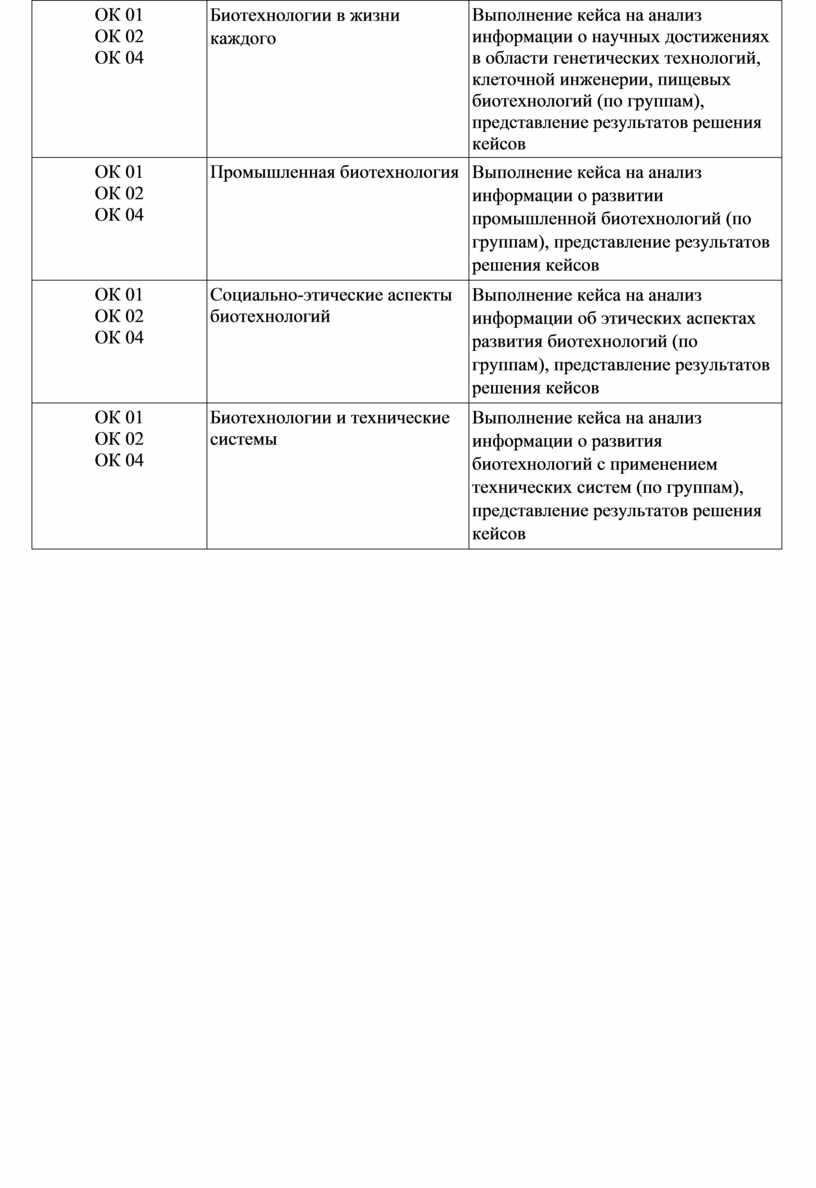 Выполнение кейса на анализ информации о развитии промышленной биотехнологий (по группам), представление результатов решения кейсов |