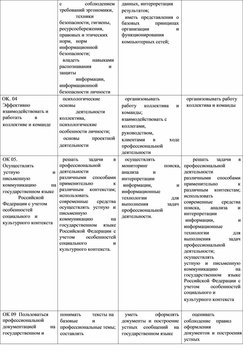 ОК 05. Осуществлять устную и письменную коммуникацию на государственном языке Российской Федерации с учетом особенностей социального и культурного контекста |