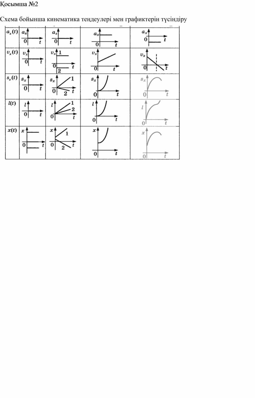 Схема бойынша кинематика теңдеулері мен графиктерін түсіндіру