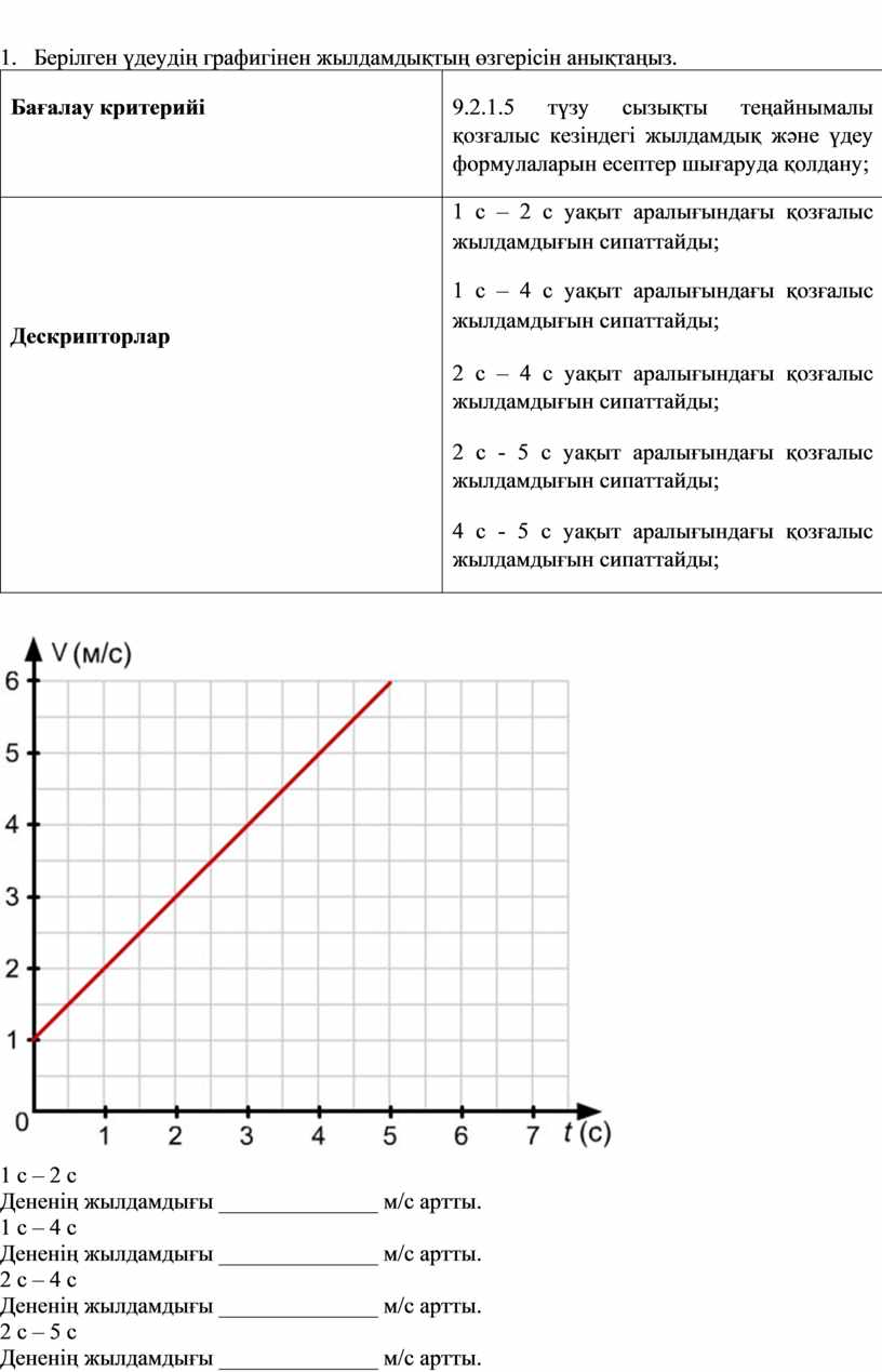 2. Берілген үдеудің графигінен жылдамдықтың өзгерісін анықтаңыз.