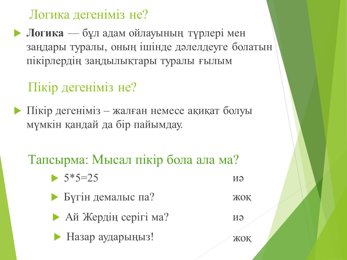 Пікір дегеніміз – жалған немесе ақиқат болуы мүмкін қандай да бір пайымдау.