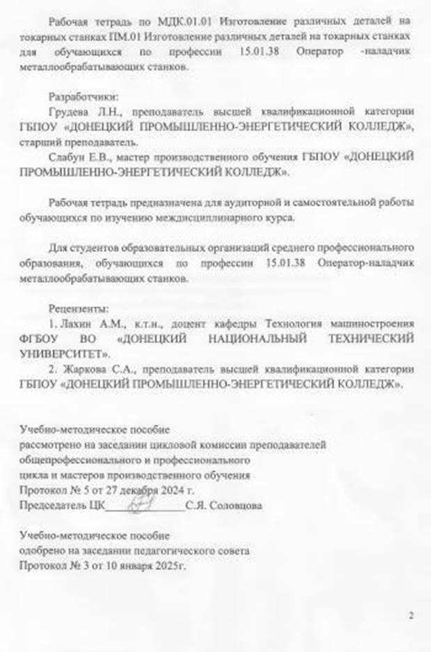 Рабочая тетрадь должна стать надежным инструментом для освоения профессии оператора-наладчика металлообрабатывающих станков, помогая студентам стать компетентными специалистами, способными решать производственные задачи в области токарной обработки.
