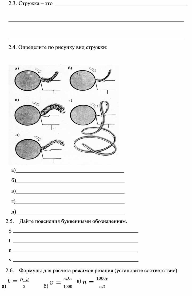 2.6. Формулы для расчета режимов резания (установите соответствие)