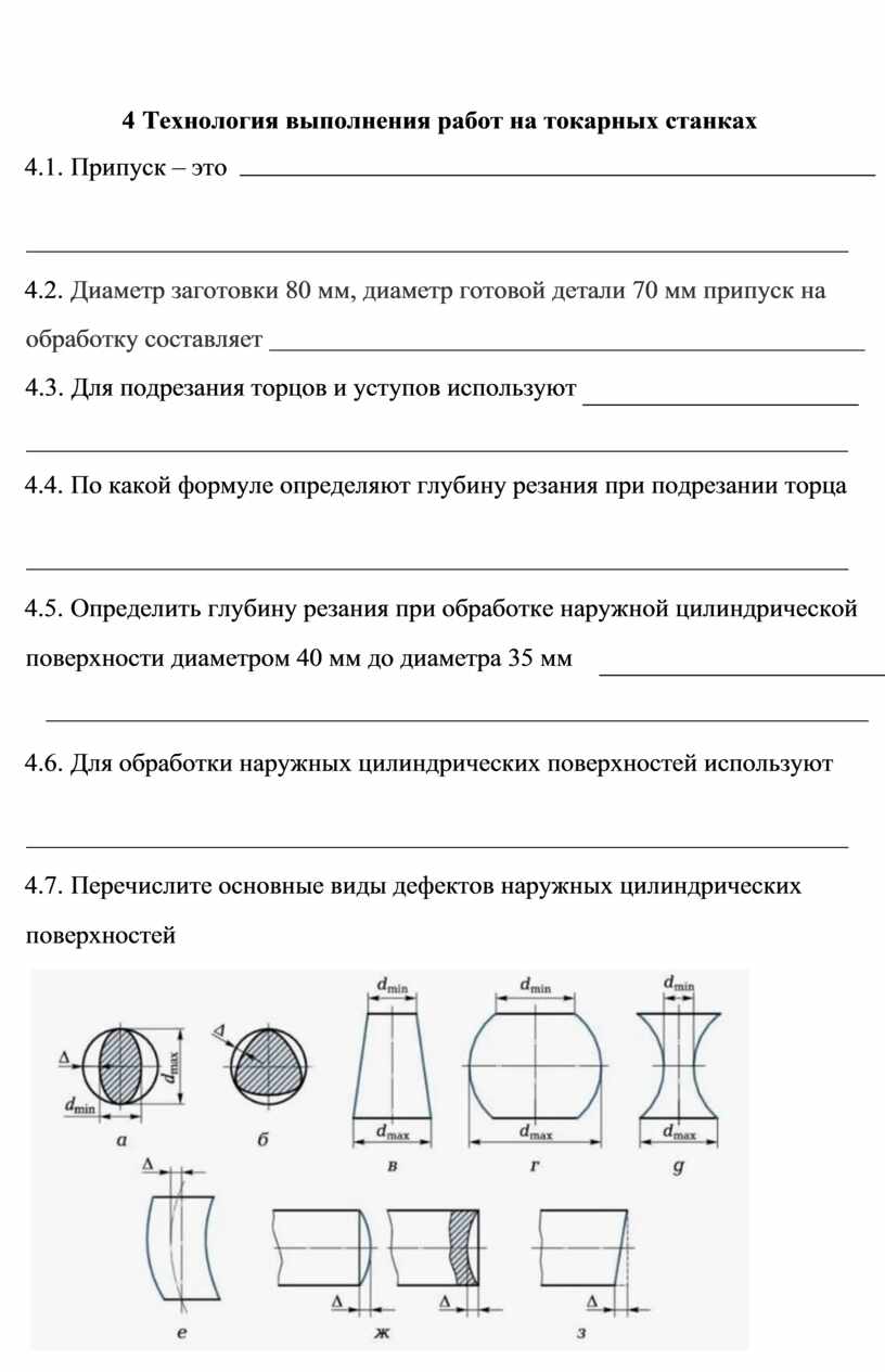 4.7. Перечислите основные виды дефектов наружных цилиндрических поверхностей