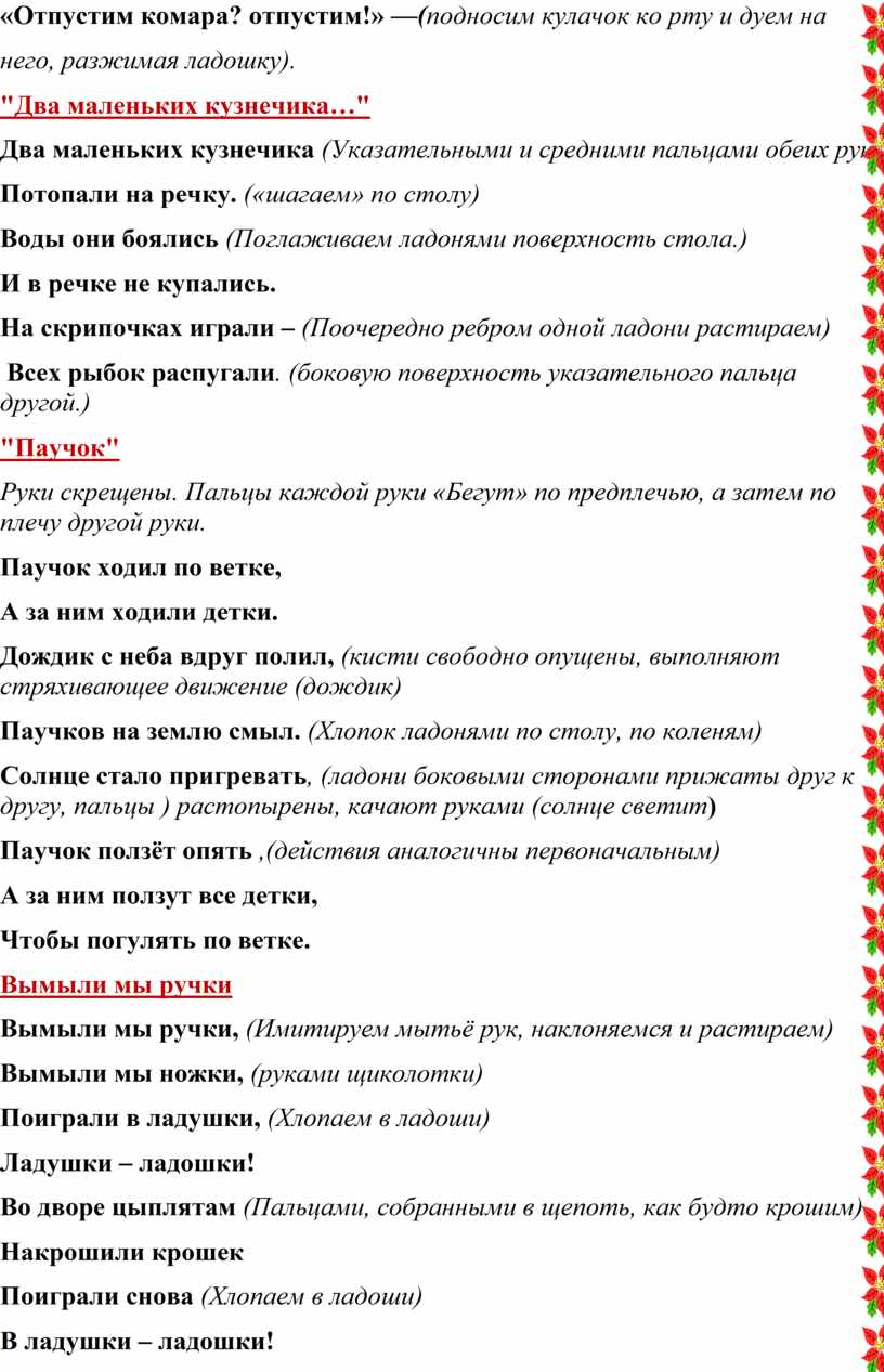 «Отпустим комара? отпустим!» —(подносим кулачок ко рту и дуем на