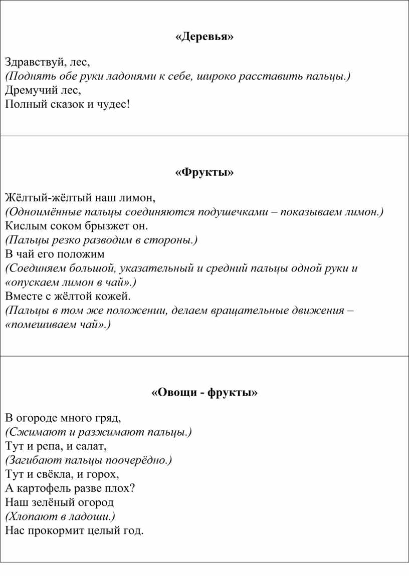 Жёлтый-жёлтый наш лимон, (Одноимённые пальцы соединяются подушечками – показываем лимон.) Кислым соком брызжет он. (Пальцы резко разводим в стороны.) В чай его положим (Соединяем большой, указательный и средний пальцы одной руки и «опускаем лимон в чай».) Вместе с жёлтой кожей. (Пальцы в том же положении, делаем вращательные движения – «помешиваем чай».)