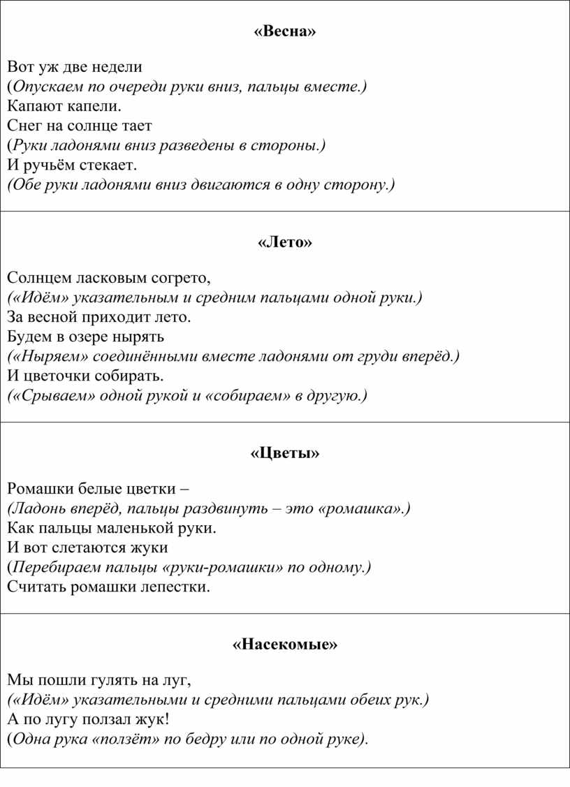 Ромашки белые цветки – (Ладонь вперёд, пальцы раздвинуть – это «ромашка».) Как пальцы маленькой руки. И вот слетаются жуки (Перебираем пальцы «руки-ромашки» по одному.) Считать ромашки лепестки.