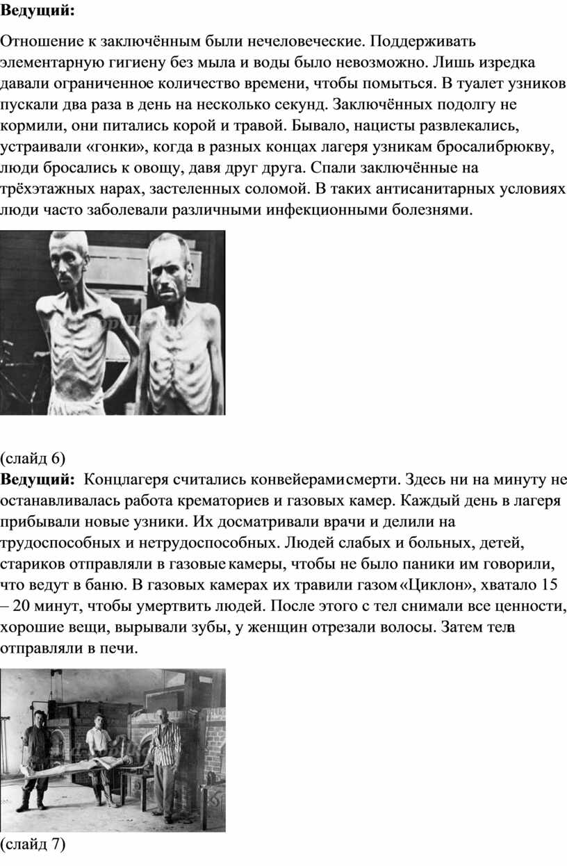 Ведущий: Концлагеря считались конвейерами смерти. Здесь ни на