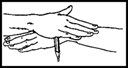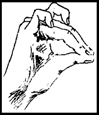 · Мышка Средний и безымянный пальцы упираются в большой. Указательный и мизинец согнуты в дуги и прижаты к среднему и безымянному пальцам.