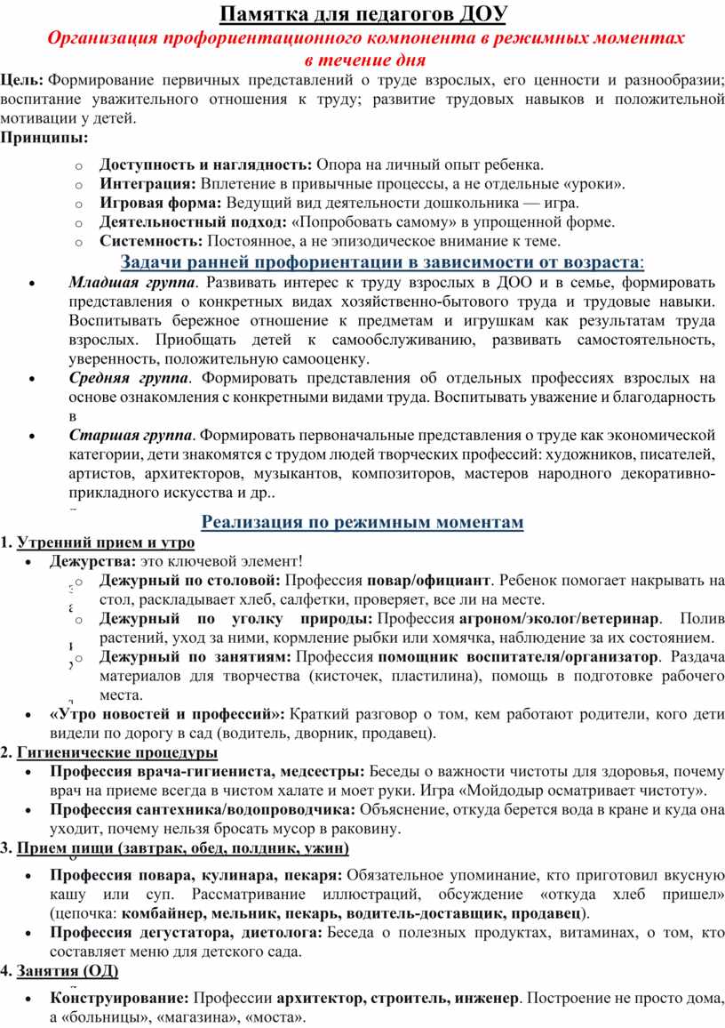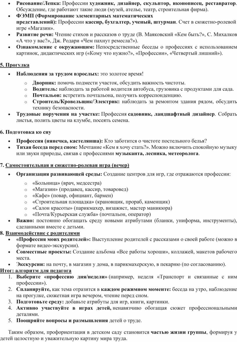жизни группы, формируя у детей целостную и уважительную картину мира труда.