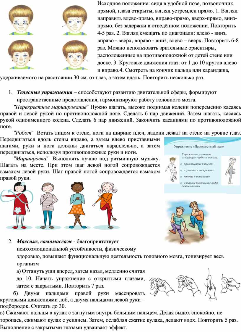 противоположной от детей стене или доске. 3. Круговые движения глаз: от 1 до 10