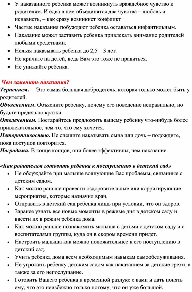 · Частые наказания побуждают ребенка оставаться инфантильным.