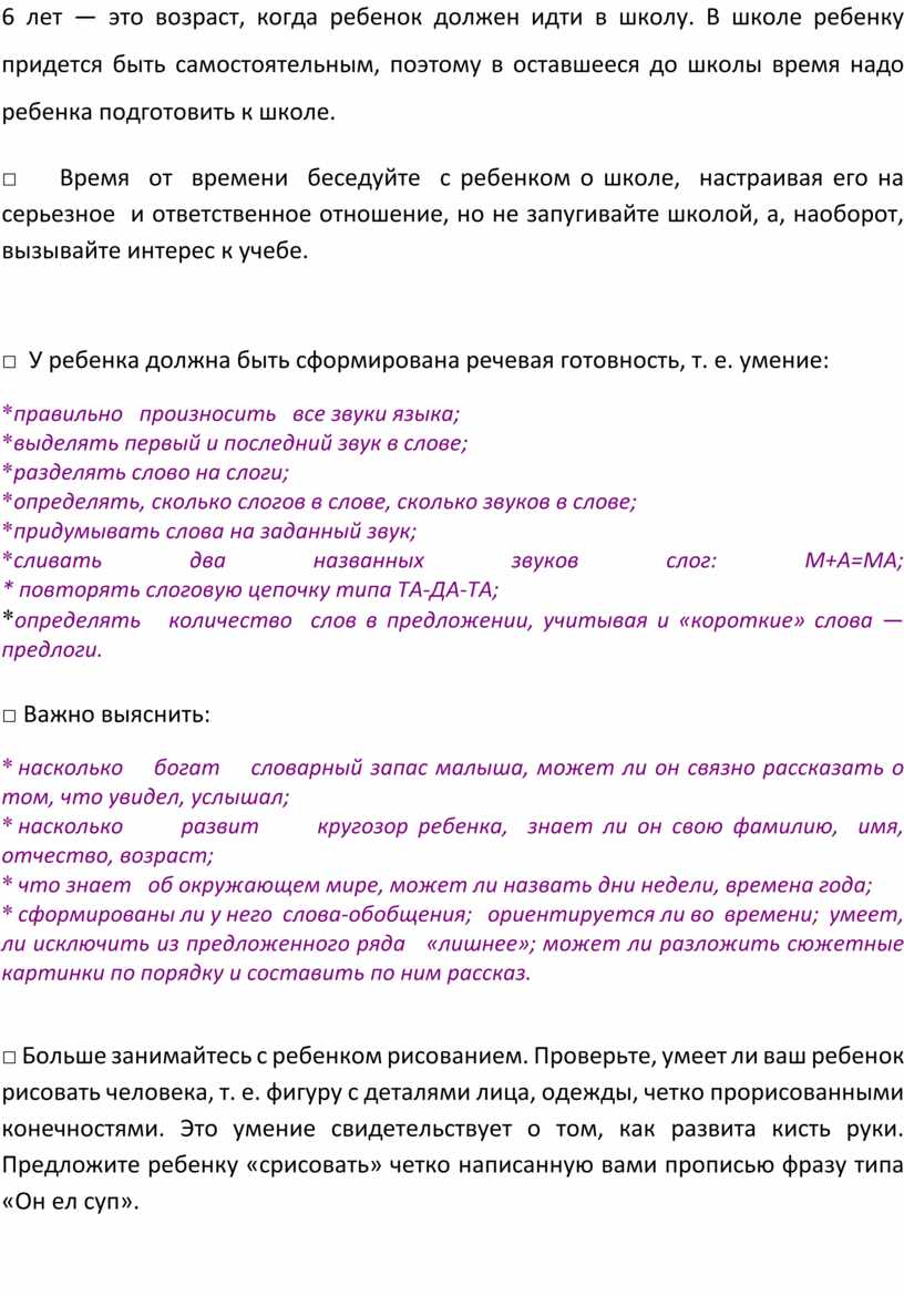 □ У ребенка должна быть сформирована речевая готовность, т. е. умение: