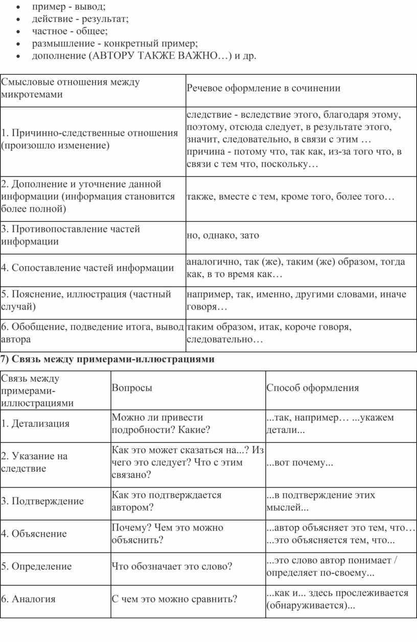 Как проанализировать смысловую связь между примерами-иллюстрациями?