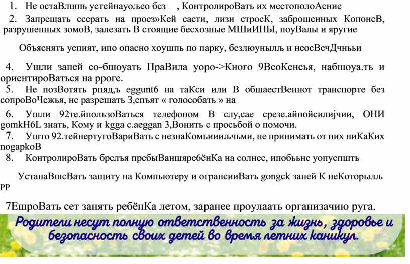 5. Не позВотять рпядљ еззить на таКси ИЛИ В обчестВеннот транспорте без сопроВоЧежья, не разрешать « голосоВать » на