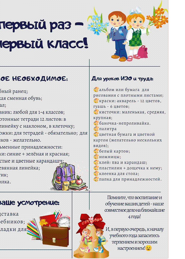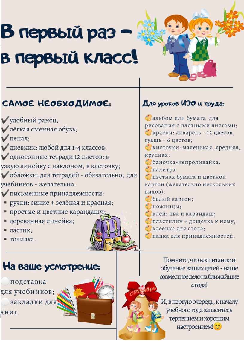 Памятка для родителей о школьных принадлежностях ученика при поступлении в 1 класс