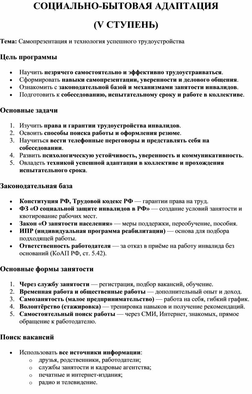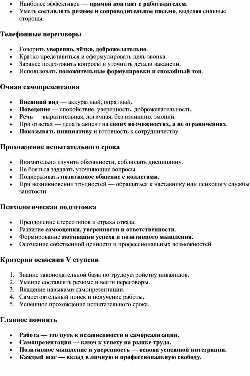 - Самопрезентация и трудоустройство — резюме,
