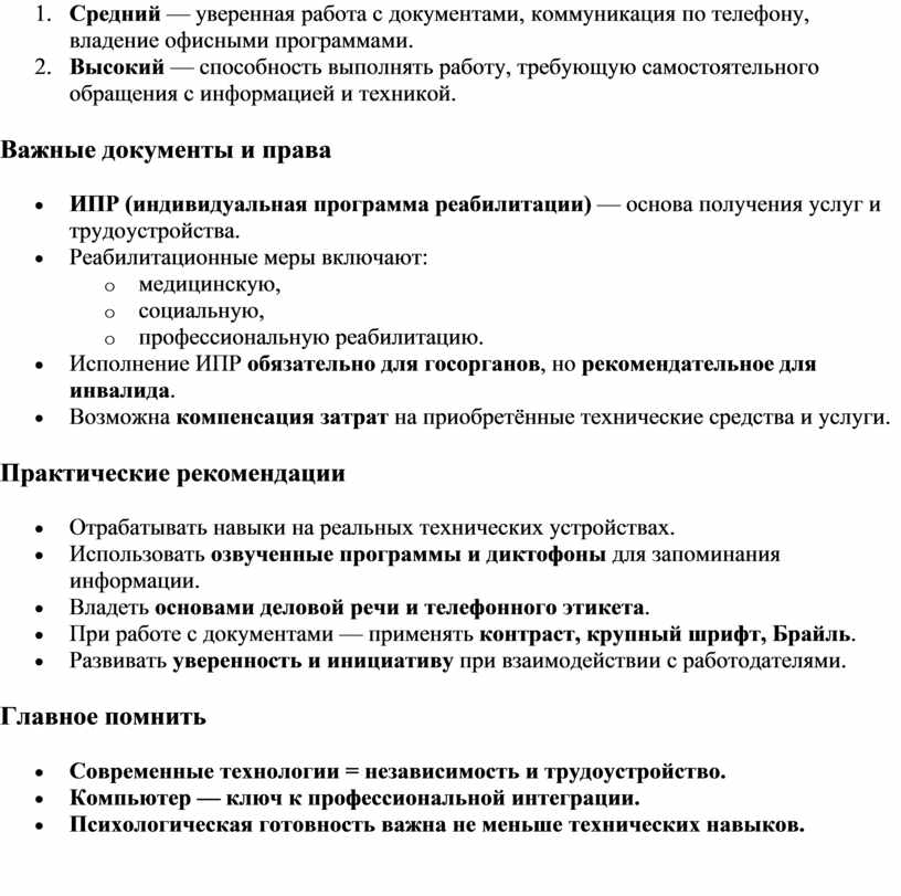 возможности и опыт каждого реабилитанта.
