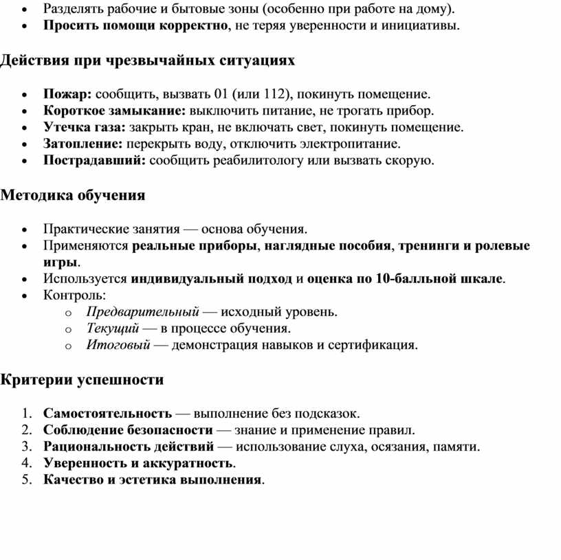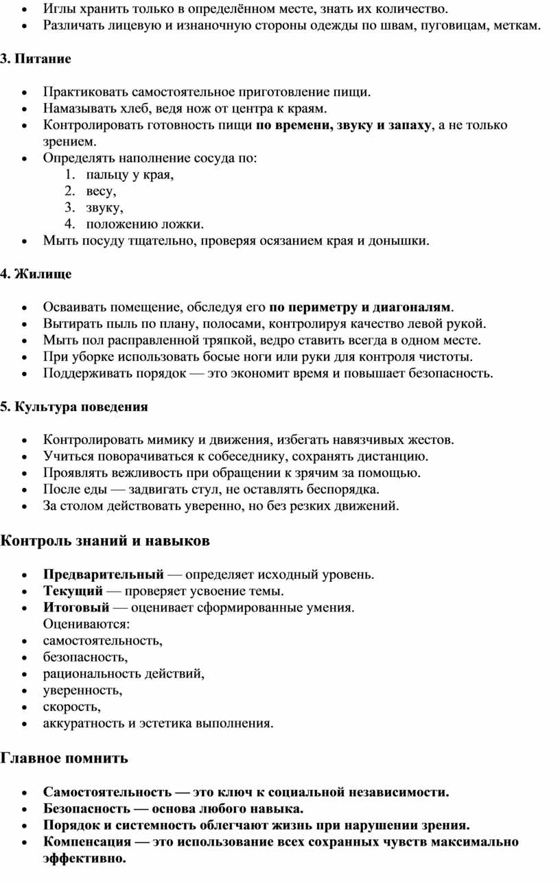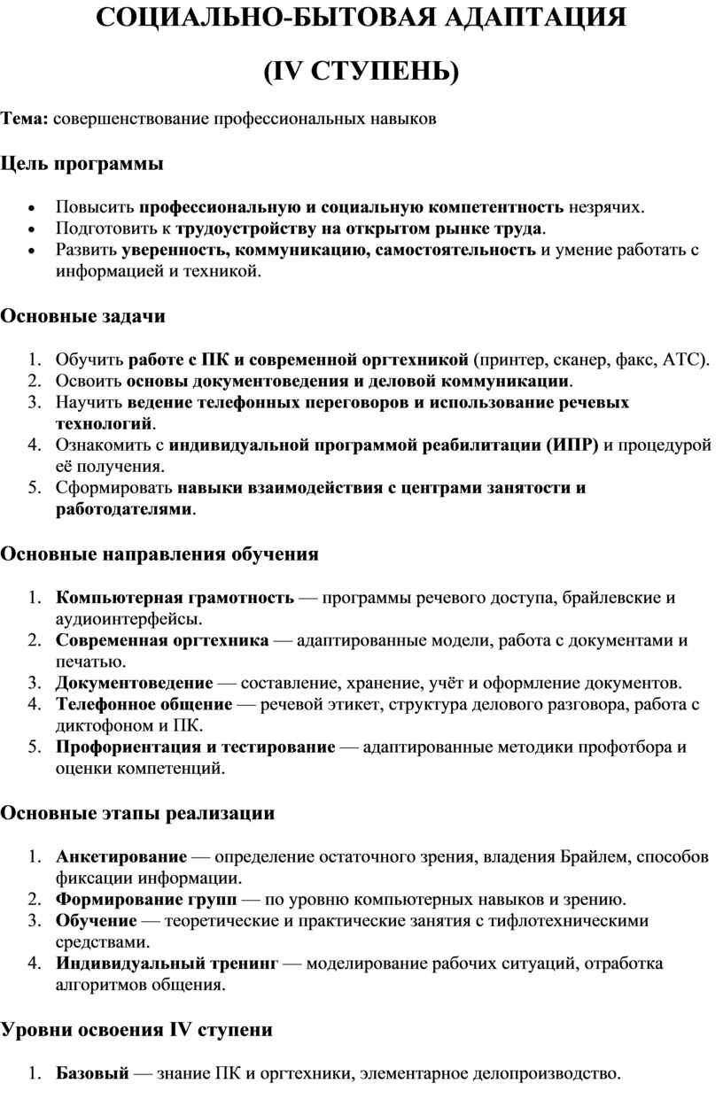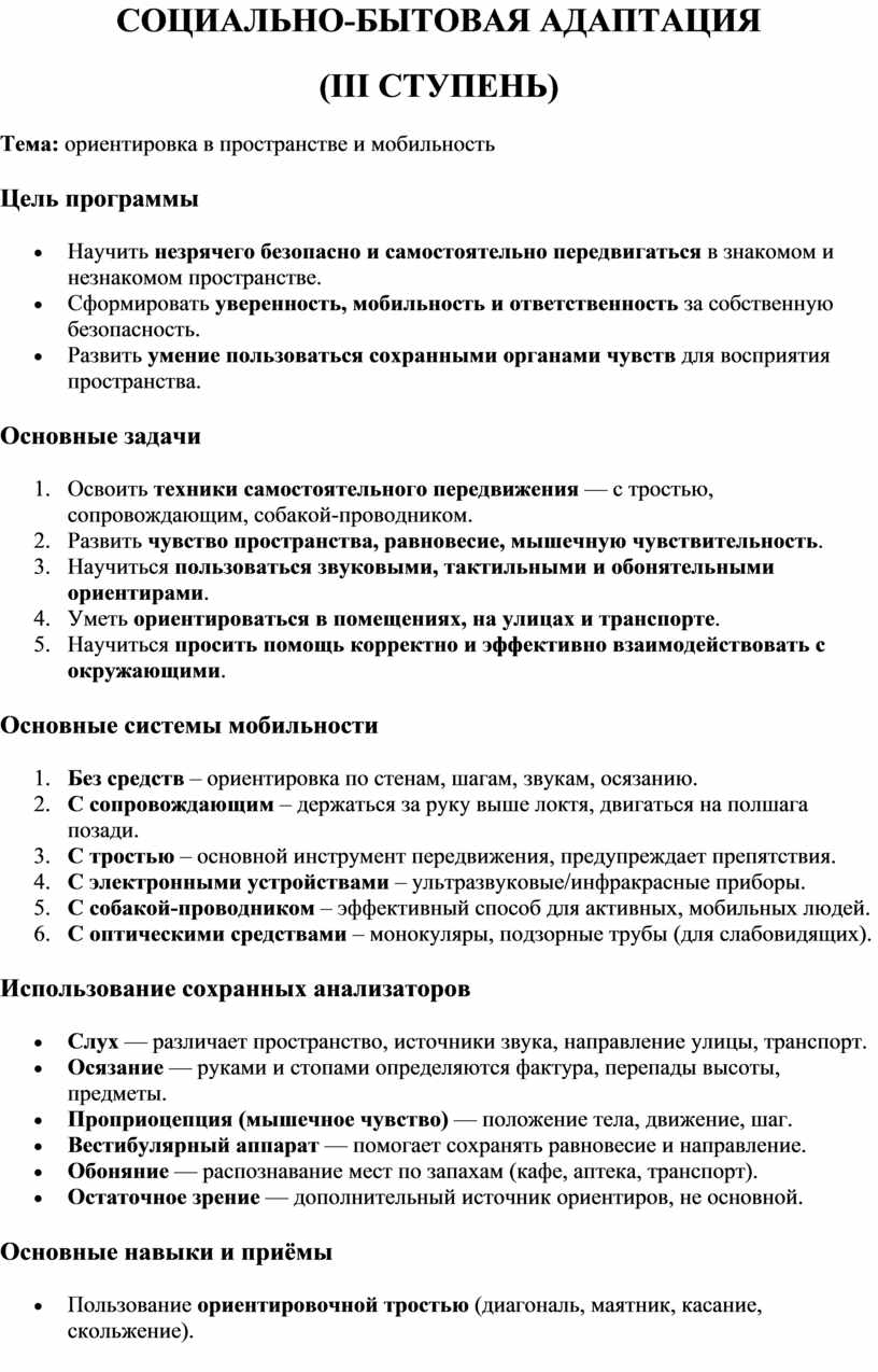 социально-бытовой адаптации инвалидов по зрению (I ступень)