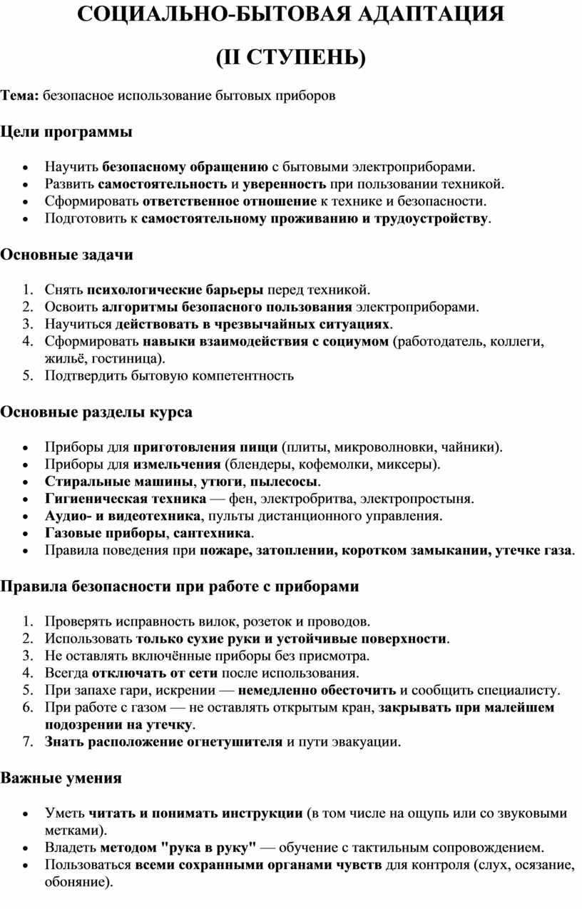 - Безопасное использование бытовых