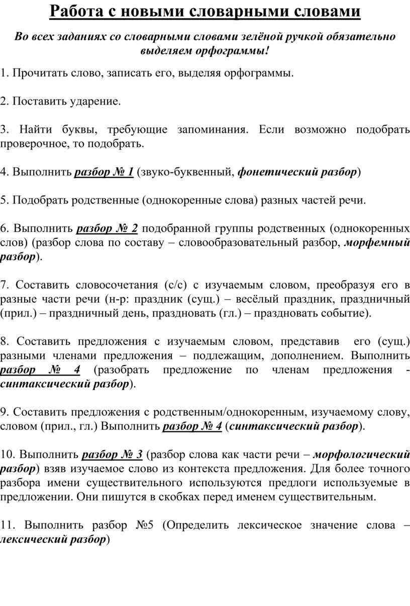 11. Выполнить разбор №5 (Определить лексическое значение слова – лексический разбор)
