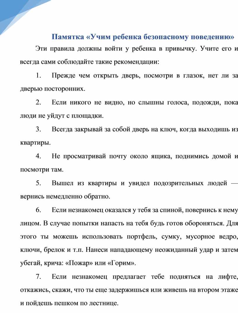 7. Если незнакомец предлагает тебе подняться на лифте, откажись, скажи, что ты еще задержишься или живешь на втором этаже и пойдешь пешком по лестнице.