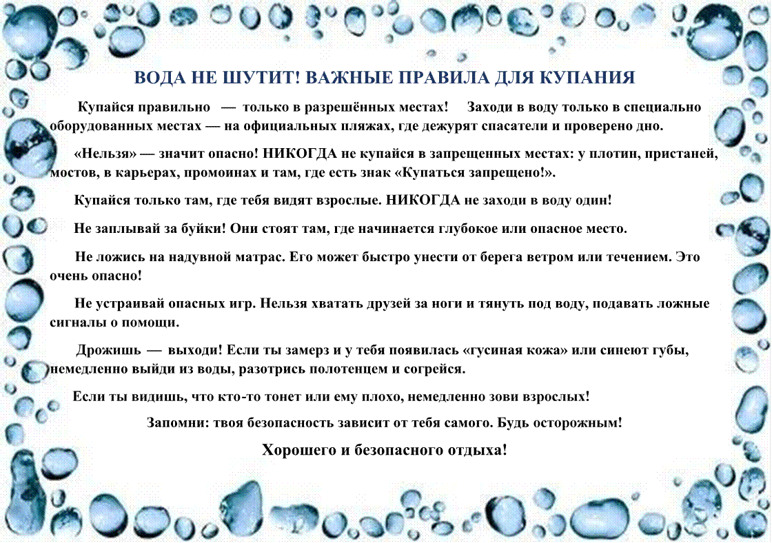 Памятка "Важные правила при купании"