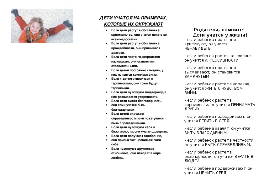 • Если дети растут в обстановке критиканства, они учатся искать во всем недостатки.